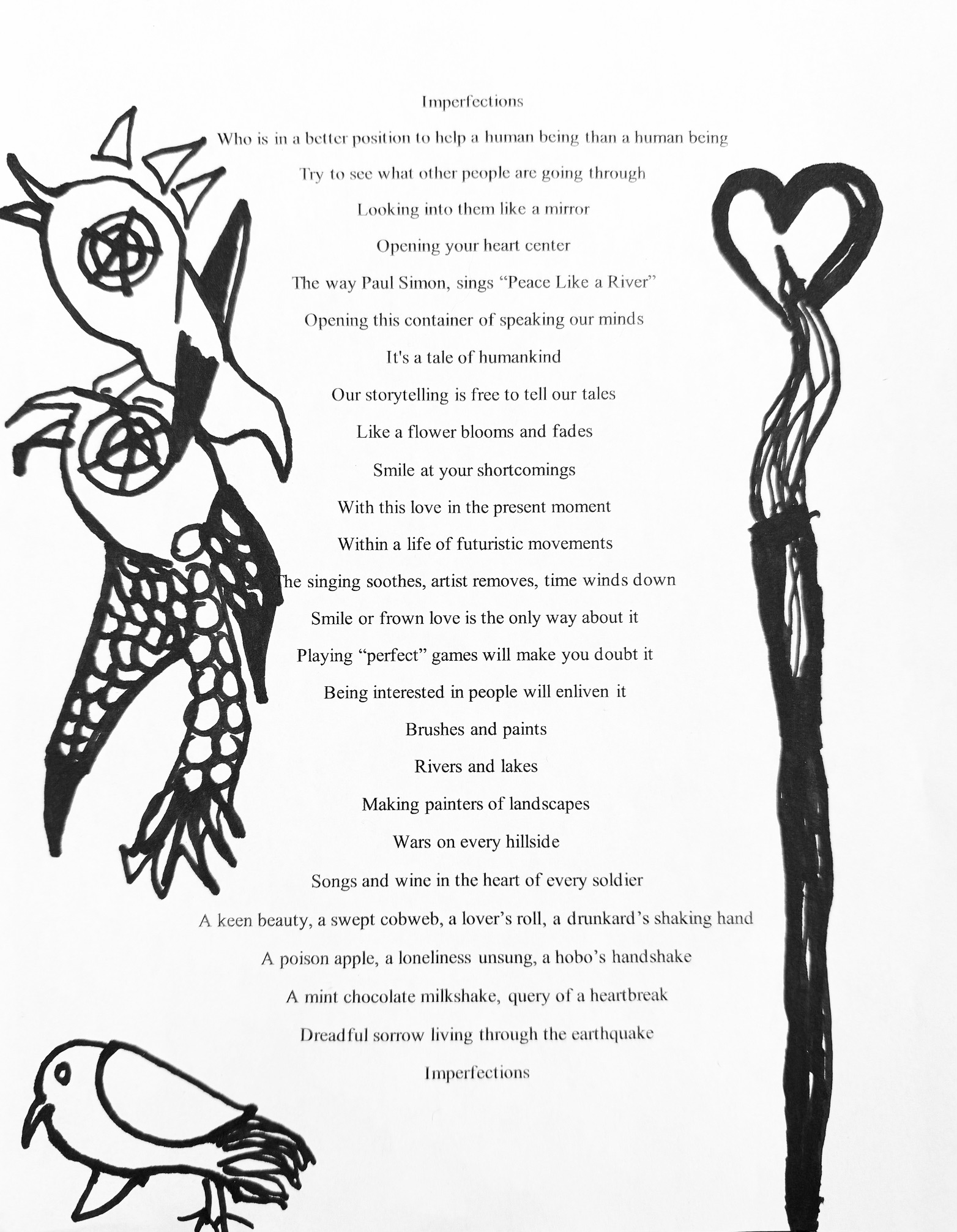 Flakes of turkey feathers with songs to sing, music to hear, hammering fingers quietly on dull strings, with the cheer that Christmas Time brings